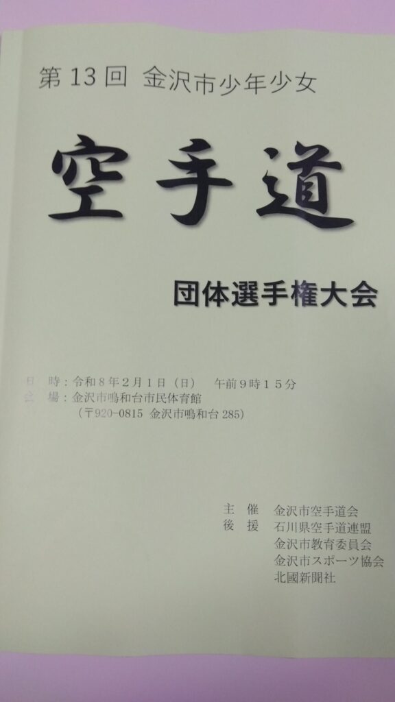 2月1日に金沢市団体選手権大会が行われました。場所は金沢市鳴和台市民体育館。
